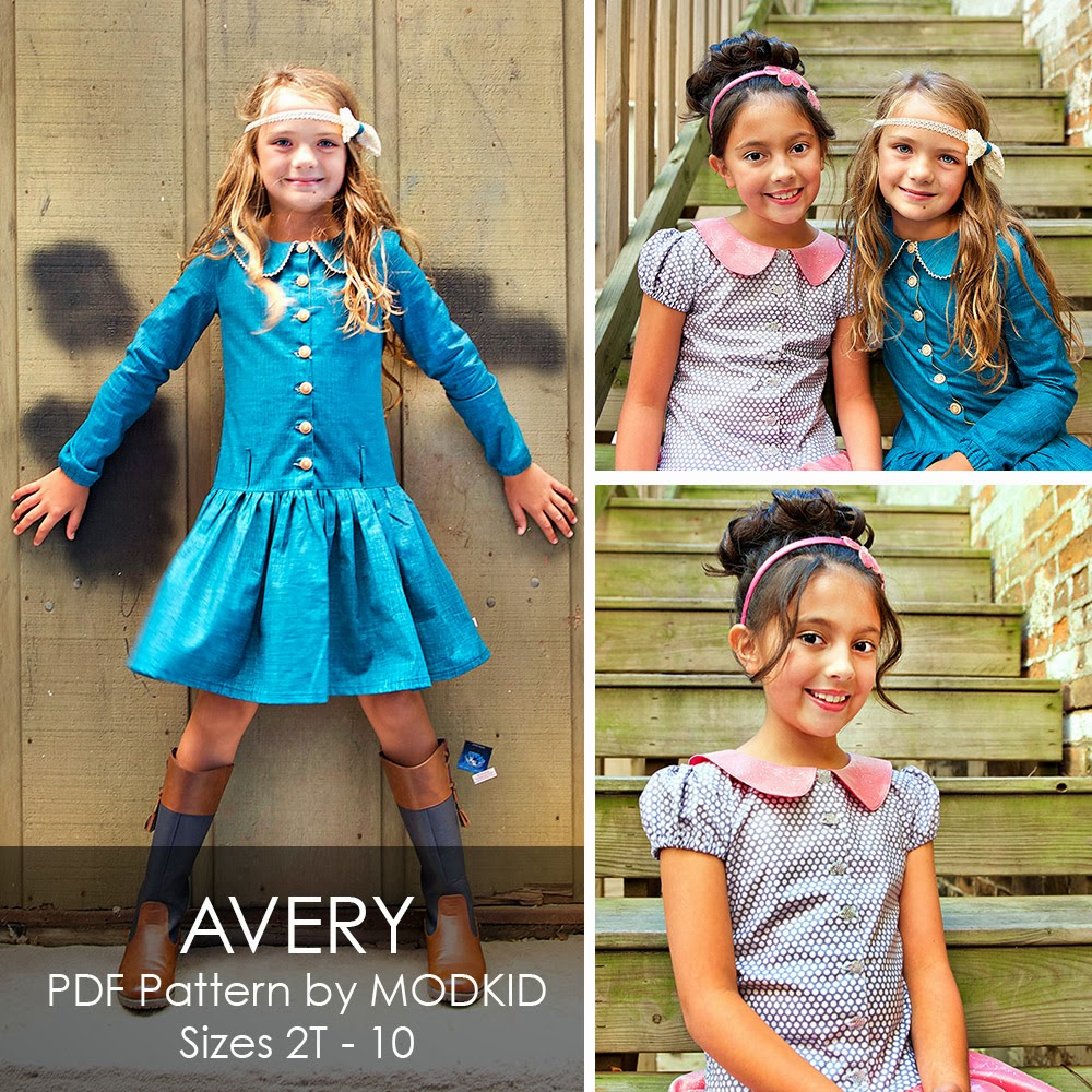 Emalee really hit it out of the park with this new design! This adorable dress pattern for girls sizes 2T to 10 features a fitted bodice with Peter Pan collar, a super full, twirly skirt and 3 different sleeve length variations to take her through all seasons. It also comes with a couple of extra optional embellishments to change it up every time you sew it.