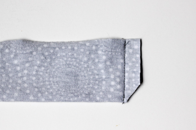 Fold the sleeves to the wrong side 1/2" and sew in place. Repeat for the opposite side.
