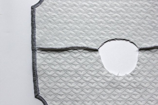 Cut the front and back pattern pieces from your fabric. I recommend fleece or sweatshirt fabric for this look. Just be sure you have at least 25% stretch with good recovery.