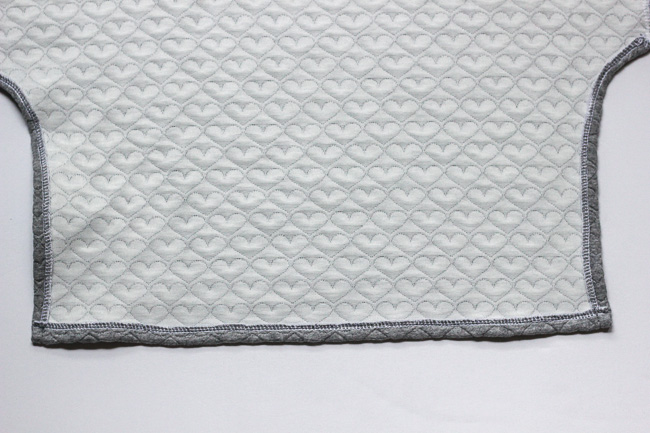 Turn the underarm seams 1/2" to the wrong side and hem. Go slow along the curves. Repeat at all four underarm seams.
