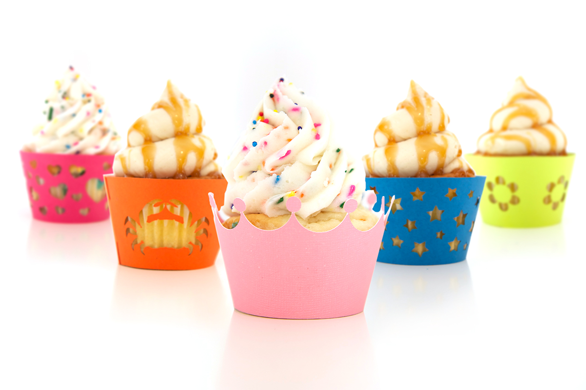 On the PAPER CRAFTING front, I have been creating lots and lots of new shapes for my Silhouette store. My most popular, by far, have been these fun and colorful cupcake wrappers shown below. And I can't lie... I do love that in order to photograph them well, we need to get some of these amazing cupcakes from Sugar Mama Bakery here at the studio. It does sweeten our day quite a bit. ;)